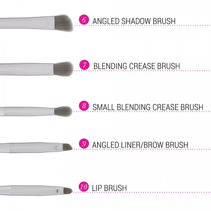 Mirror, mirror, on the wall, what are the coolest brushes of all? Our Smoke 'n Mirrors 10 Piece makeup Brush Set! This assortment of superior-quality face and eye makeup brushes is designed to deposit just the right amount of pigment and blend expertly for foolproof, flawless full-face looks. Brushes feature shiny gunmetal handles and plush synthetic gray bristles that work with liquids, creams and powders. The collection comes in a matching zip-top pouch for convenient storage and travel.