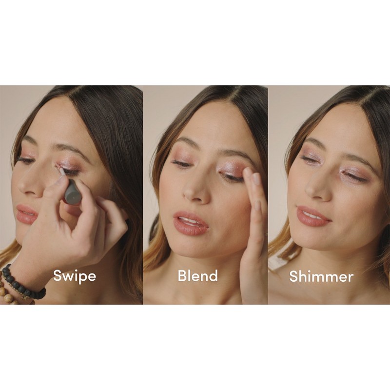 A product with multidimensional shimmer in a weightless cream texture for a high-impact finish on eyes, lips, and beyond.