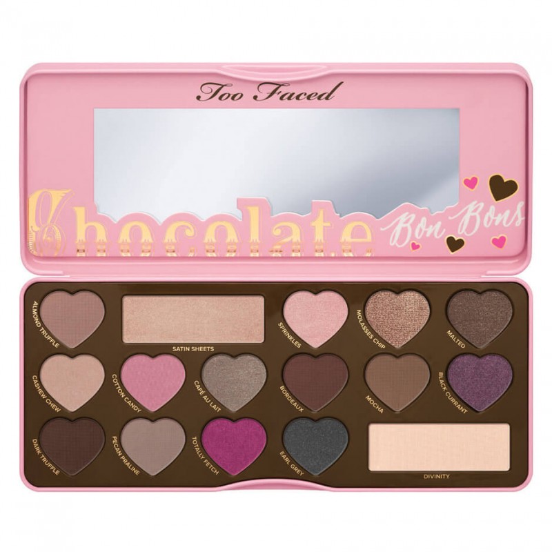 Discover a candy-coated confection of heart-shaped delights with 16 matte and shimmer shades in cool pops of color, sugary brights, and beautiful go-to neutrals - all infused with Too Faced's chocolate-scented, antioxidant-rich cocoa powder formula. Chocolate Bon Bons is the third palette in their bestselling Chocolate Bar Eye Shadow Collection (and some might say the cutest!). They've included their signature Glamour Guide with three beauty looks to get you started, but don't stop there - the looks are limitless.