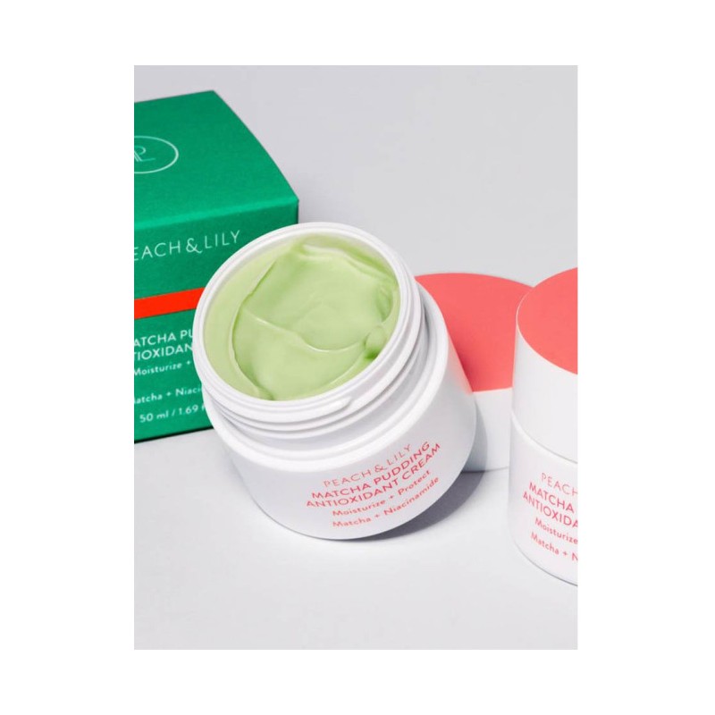 WHAT IT IS: Matcha isn't just for sipping! Peach & Lily's velvety Matcha Pudding Antioxidant Cream addresses real life problems. If you've ever wondered why you might be seeing premature and rapid signs of aging, you're not alone. Our skin faces increasing stress from heightened pollution, fast-paced stressful lives, excess sun exposure and lack of sleep. All of this leads to free radical damage, which can accelerate signs of aging. This indulgent formula addresses all of this by drenching skin with powerful antioxidants, creating a protective barrier to help fight free radical damage at all layers of the skin. Spiked with Matcha, Cape Lilac Extract, Niacinamide and Adenosine, skin is blasted with antioxidants and brightening and firming ingredients. The delightful pudding texture delivers deep hydration without sitting heavy on the skin. Thank you very Matcha!
