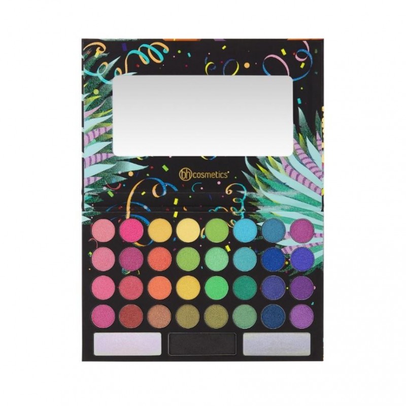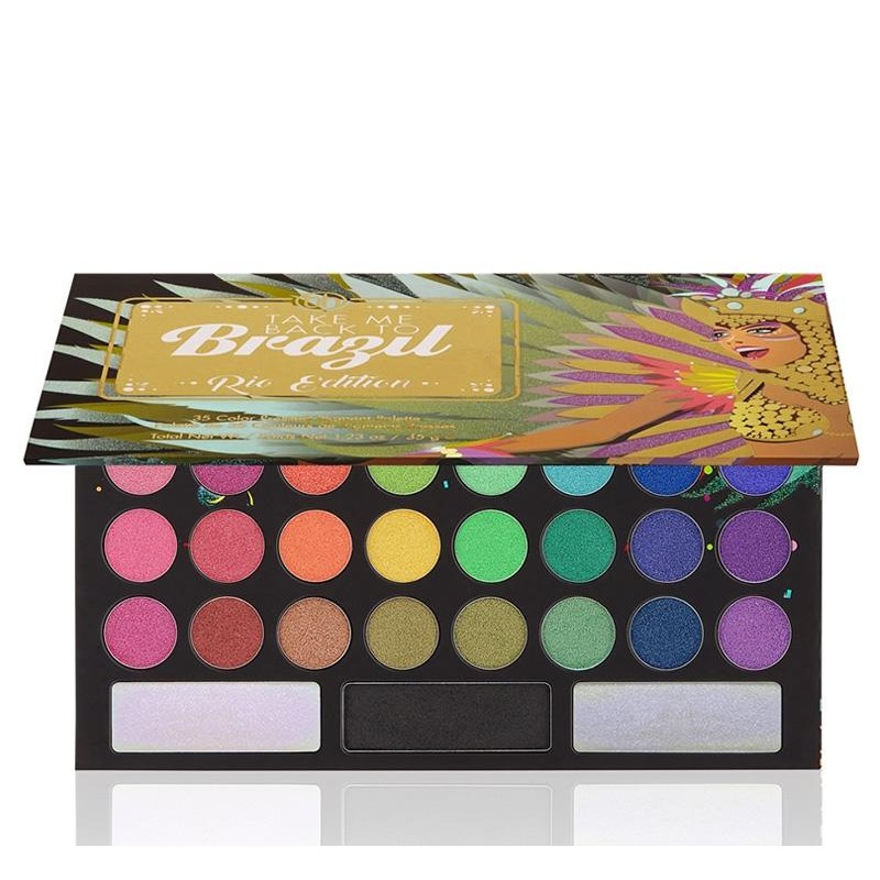 Capture all the glamour and excitement of Rio's world-famous Carnival wearing the vibrant hues in BH Cosmetics Take Me Back To Brazil: Rio Edition - 35 Color Shadow Palette. This parade of show-stopping super shimmers is a high-shine version of our original and wildly popular Take Me to Brazil Palette and features passionate pinks and purples, bodacious blues and greens, exotic orange and more. The super-saturated shades can be layered, blended, worn alone and transformed with 2 supercharged, duochrome glitters for maximum sparkle and 1 matte black for drama.