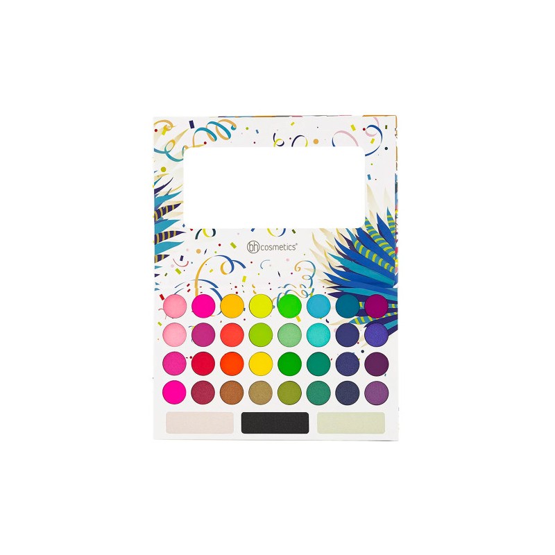 Inspired by Rio's Carnival, BH Cosmetics Take Me Back to Brazil - 35 Color Pressed Pigment Palette expands on coveted favorites to unleash a chromatic parade of shimmers, satins, and mattes - plus 2 oversized dual-chrome, ultra-luminous transformers. Samba to the rhythm of passionate purples, tangy yellows, provocative pinks, and more. Take Me Back to Brazil 35 Color Pressed Pigment Palette, offering buildable, blendable hues to dazzle the senses. Join Carnival and revel in every daring, flashing moment! Feathered headdress not required.