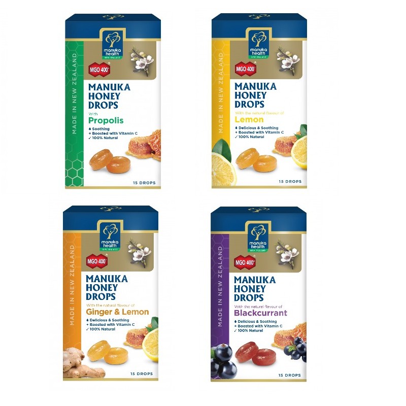 MGO400+ Manuka Honey. Propolis in Manuka Health's Honey Suckles has been gathered by bees from flowers in New Zealand's untouched pristine environment and used to protect their hives against infection. Manuka Honey is famous for its unique activity found in no other honey in the world. These delicious soothing lozenges combinethe goodness of premium New Zealand Manuka honey with the zesty taste of natural taste and an extra boost of Vitamin C. Made with our high grade MGO400+ Manuka Honey, certified for natural methylglyoxal content (400mg/kg)