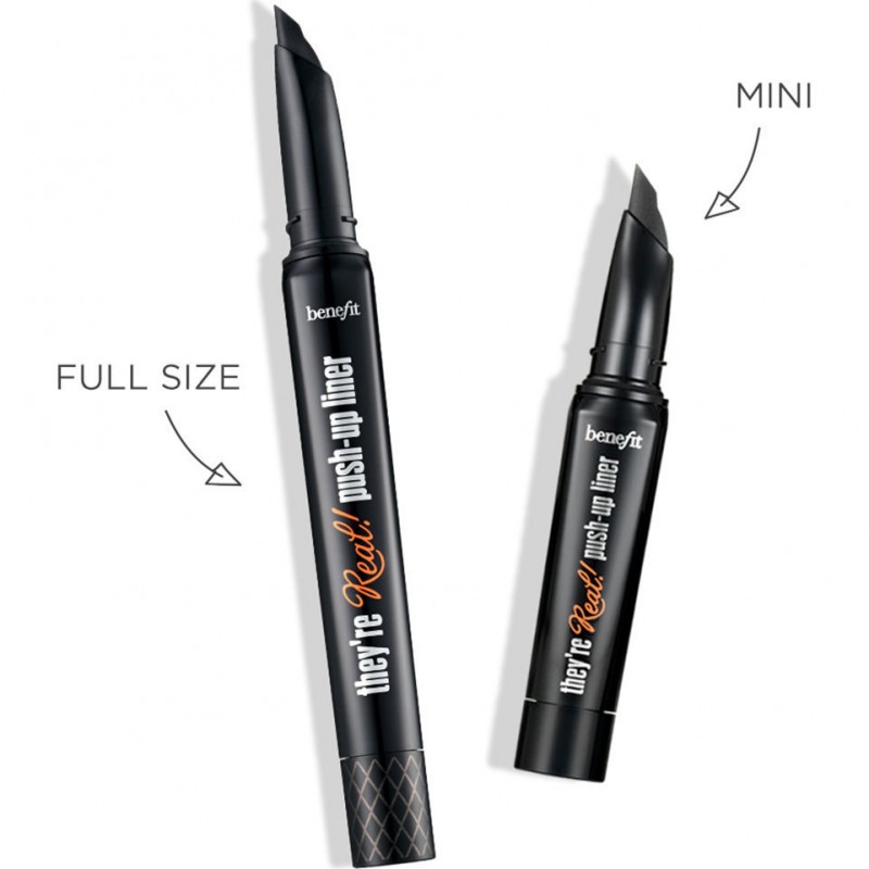 Benefit They’re Real! Push-Up Liner is the first foolproof and budge-proof gel eyeliner in a pen. This eyeliner’s soft AccuFlex™ tip is custom-angled to draw an easy line. Its flat, wide guard gently pushes lashes aside to get close to lash line.