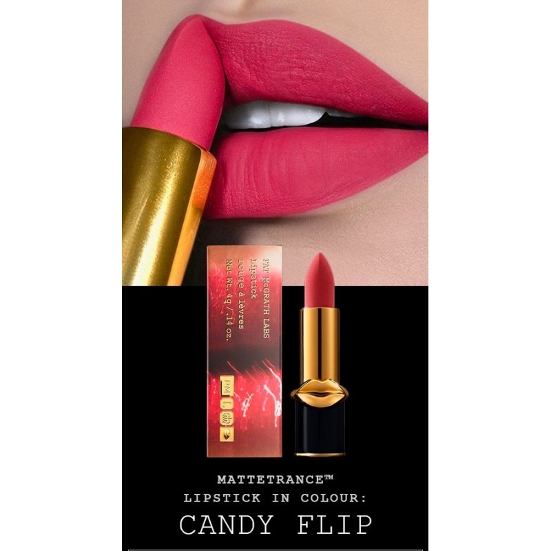 MatteTrance™ is a richly pigmented lipstick with a sensually creamy, powerful pigment that evokes screen siren glamour with every application. Each shade is presented like a jewel in a black-lacquered couture case fashioned with a sensually surrealist golden lip that’s destined to be a cult-status collectable. Get entrancing colour that satisfies with supreme hydration and opulent matte opacity. It’s infused with optical diffusers that blur the appearance of imperfections, combined with a blend of polymers to provide flexibility and adherence. An advanced formulation of spherical particles ensure a creamy soft texture for the smoothest film of colour. Each shade is enmeshed in a powder film combined with saturated pigment for lightweight opaque coverage.