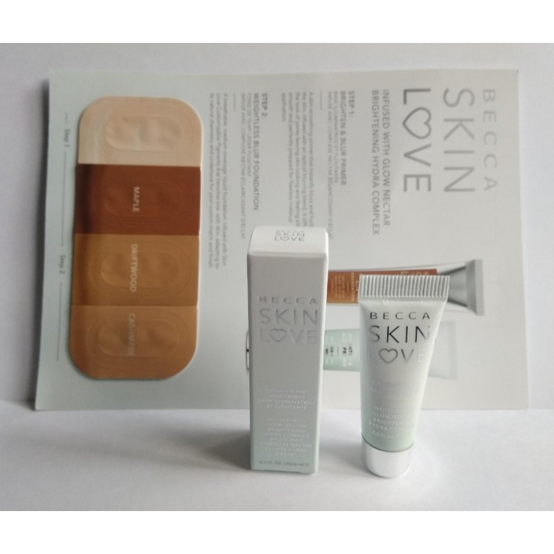 - sample card becca ( 3 shade weighless blur foundation maple, driftwood, cashmere + primer ) size @0,03ml