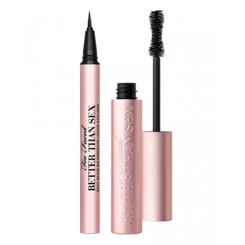 Too Faced Better Than Sex Iconic Lashes & Liner Set is a mascara and eyeliner set that includes a full size Better Than Sex Mascara & full size Better Than Sex Easy Glide Waterproof Liquid Eyeliner.