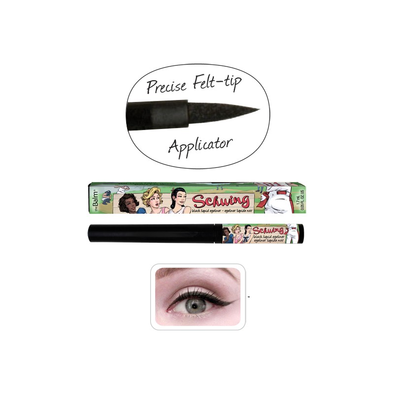 Lining and defining eyes has never been easier! Built with a uniquely thin and tapered felt-tip applicator, Schwing gives you careful control over subtle strokes and bold lines. Create winning looks with this rich, matte-black finish that won’t smudge, flake, or take forever to dry. Cool and compact, Schwing fits wherever you need it. Whether you’re home or away, get ready to bat those eyes and play the field!