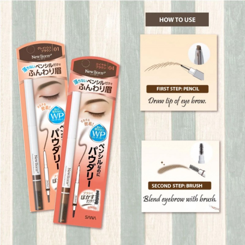 With SANA Innovative NewBorn Eyebrow Pencil with powder formula tip & brush drawing a pair of beautiful professional eyebrow can never be so easy! Super Waterproof. Strong to sweat, water & sebum.