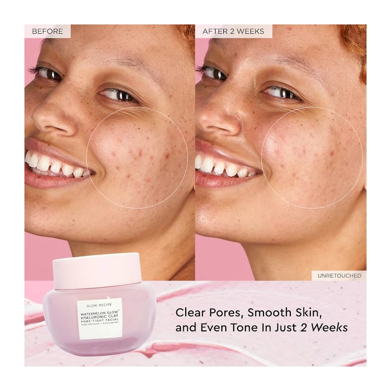 facial with hyaluronic acid-infused kaolin clay instantly minimizes the look of pores, evens tone, and hydrates all skin types. Proprietary hyaluronic-acid-infused whipped clay frees skin of cell buildup while chemical exfoliants, watermelon enzymes, BHA, & PHA, clear congested pores. Combined with gentle physically exfoliating micronized blueberry seed powder, this 5-minute facial decongests pores to unveil softer, brighter, and clearer-looking skin.