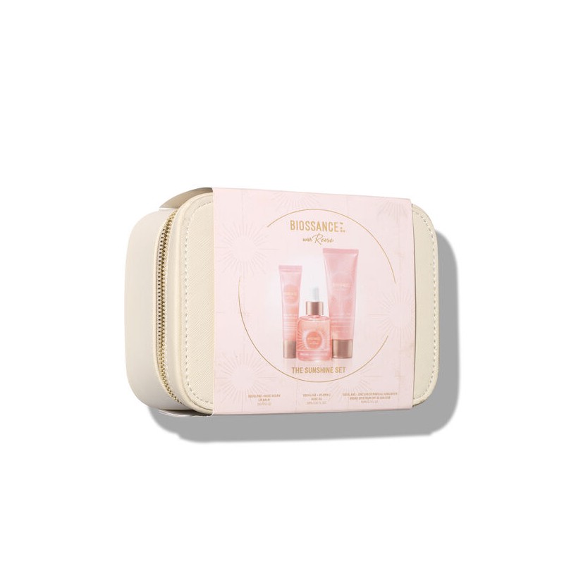 Get a skincare routine ready for summer with the Biossance The Sunshine Set, a luxurious skincare trio curated in partnership with Reece Witherspoon that features products rich in squalane, all housed in a sustainably made travel case.