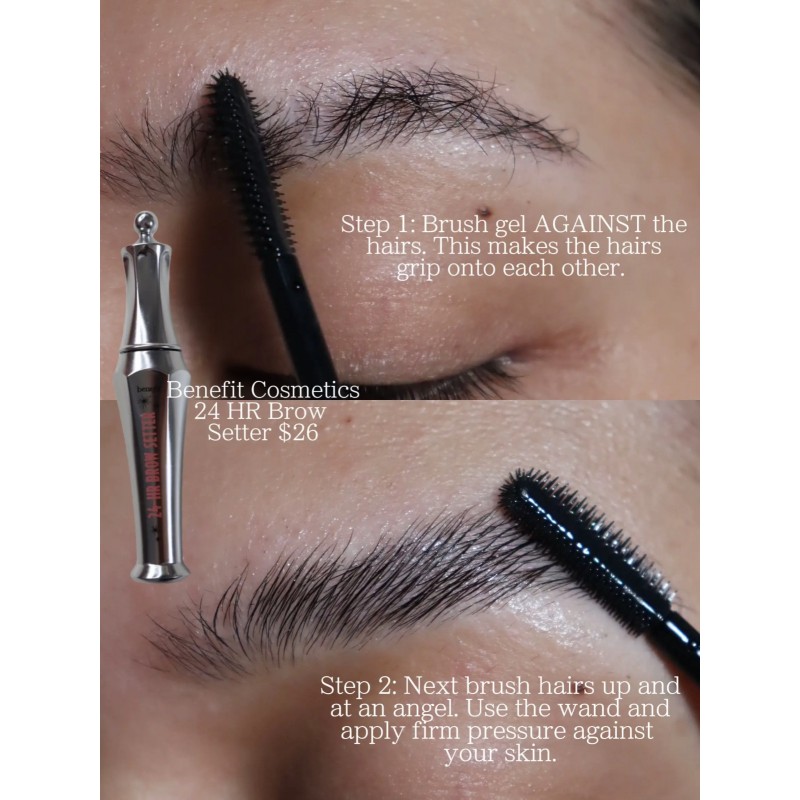 Hold eyebrows in place and keep them perfectly polished all day with this clear setting gel. The custom brush features long bristles that evenly coat brow hairs from root to tip and short bristles to sculpt and shape hairs into place. The flexible, flake-free and quick to dry formula applies easily to brows and locks on makeup for 24 hours