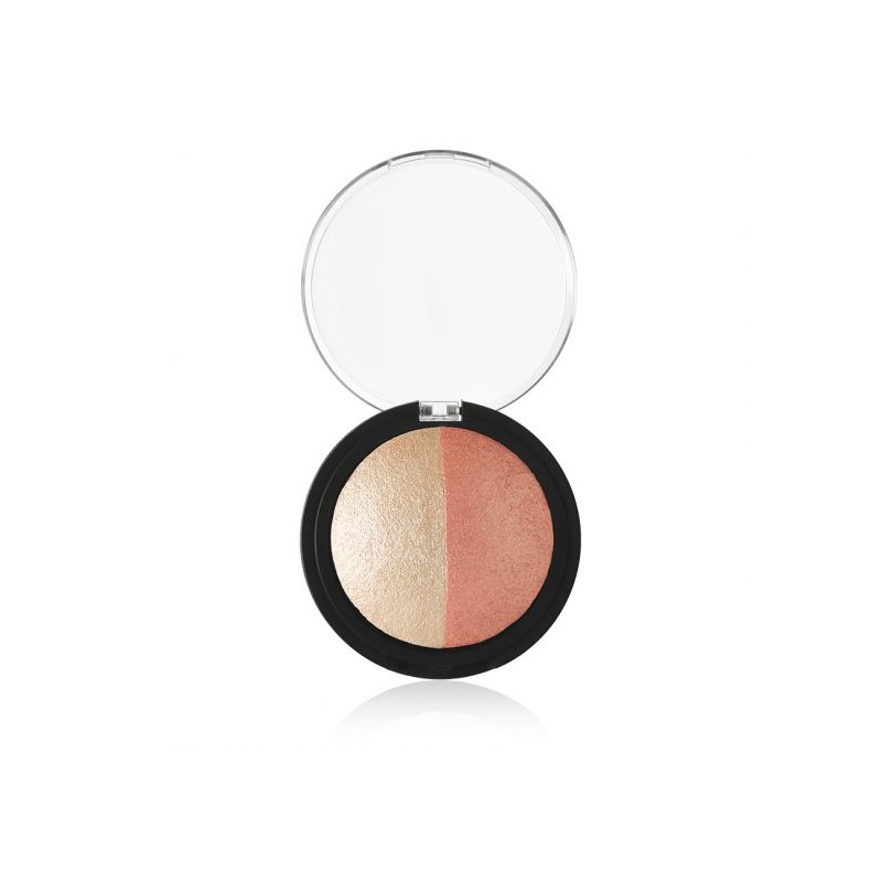 Create a natural-looking blushed glow with this baked duo. The Highlighter helps illuminate the skin wtih a sheer wash of shimmer, while the Blush adds the perfect flush of color. Enriched with Jojoba, Sunflower, Apricot, and Grape to help nourish and hydrate the skin.