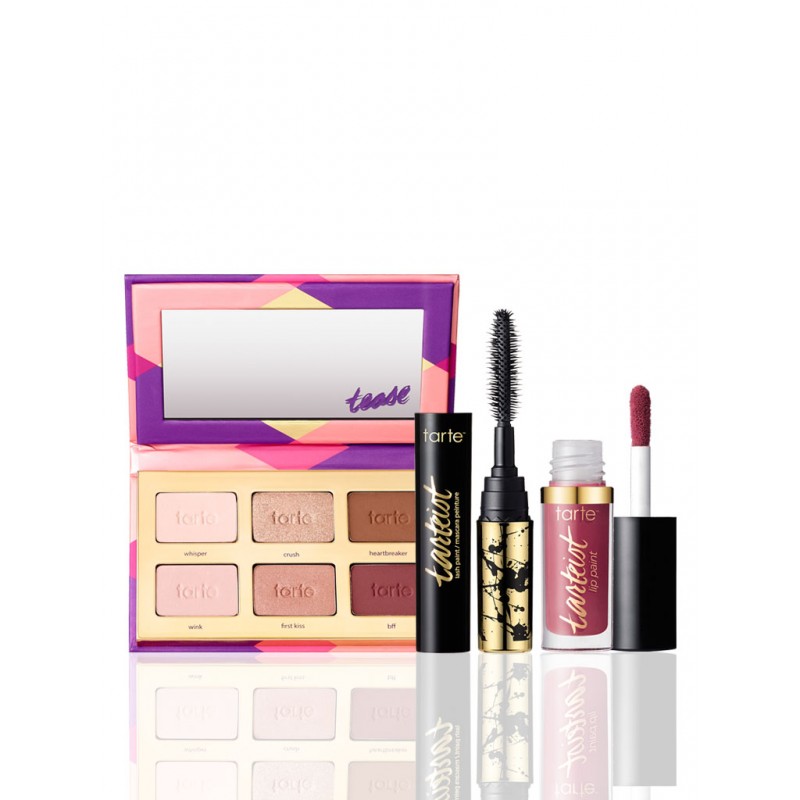 Product performance: Not sure how to put a full face look together? Take the guesswork out of natural glam with this exclusive travel-friendly set that’s got one of everything in tarte’s best-selling formulas & shades. The purse-sized tartelette™ tease palette gives you 6 Amazonian clay eyeshadows in super wearable shades that blend to a dream. Then, pump up the volume on your lashes with the jet black tarteist™ lash paint mascara that’s proven to increase lash volume by 2700%! For the finishing touch, paint on weightless, creamy matte lip color in the Instagram-worthy shade called fomo