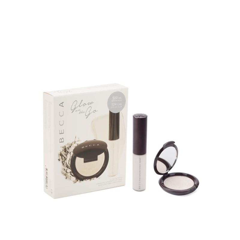 Get the iconic BECCA glow wherever you go with this set of two mini highlighters in Pearl, the best-selling soft white shade. Designed for targeted highlighting, all-over radiance, and touch-ups, these travel-friendly powder and liquid luminizers fit perfectly inside your party clutch.